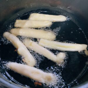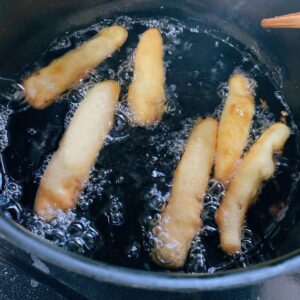 ★揚げている時、初めはあまり触らないこと!あんまり触るところもが剥がれちゃう!ある程度固まったらコロコロ転がしてね!